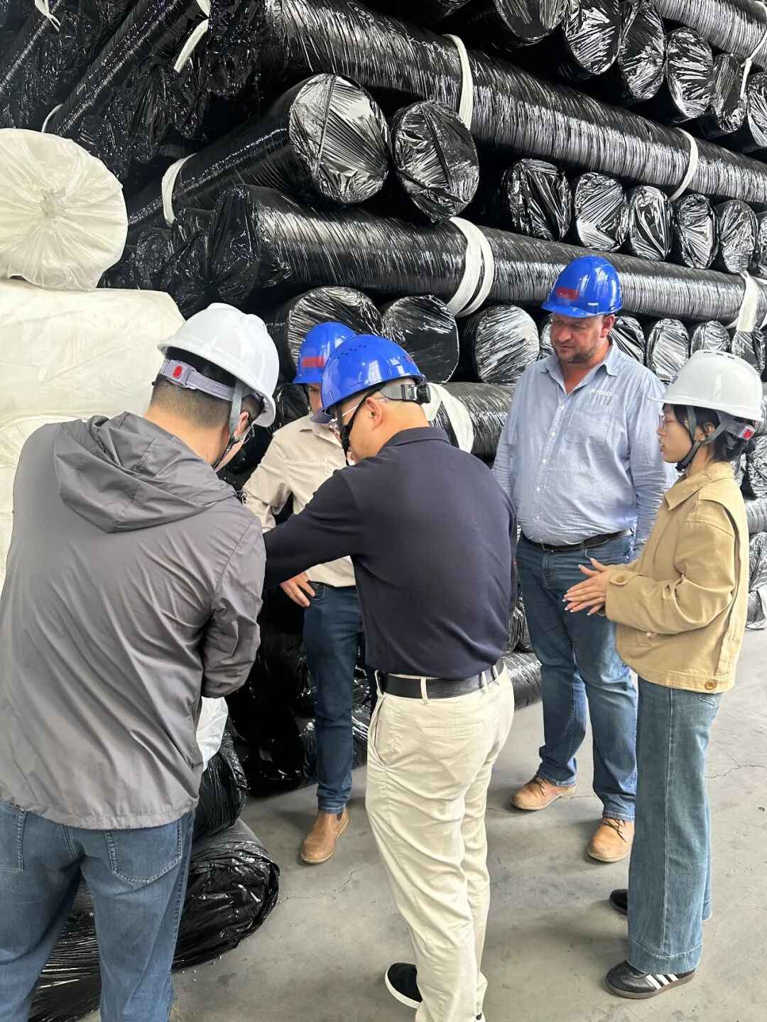 考察现场,南非国际友人一行深入集团生产车间,实地查看土工材料生产线的运作流程、生产工艺、产品质检环节,全面了解公司土工材料产品的研发实力、生产规模、品质管控体系及各类产品的应用场景。从原材料加工到成品产出,标准化、智能化的生产流程,严苛的质量把控标准,让外宾对我司的生产实力与产品品质给予了高度认可。